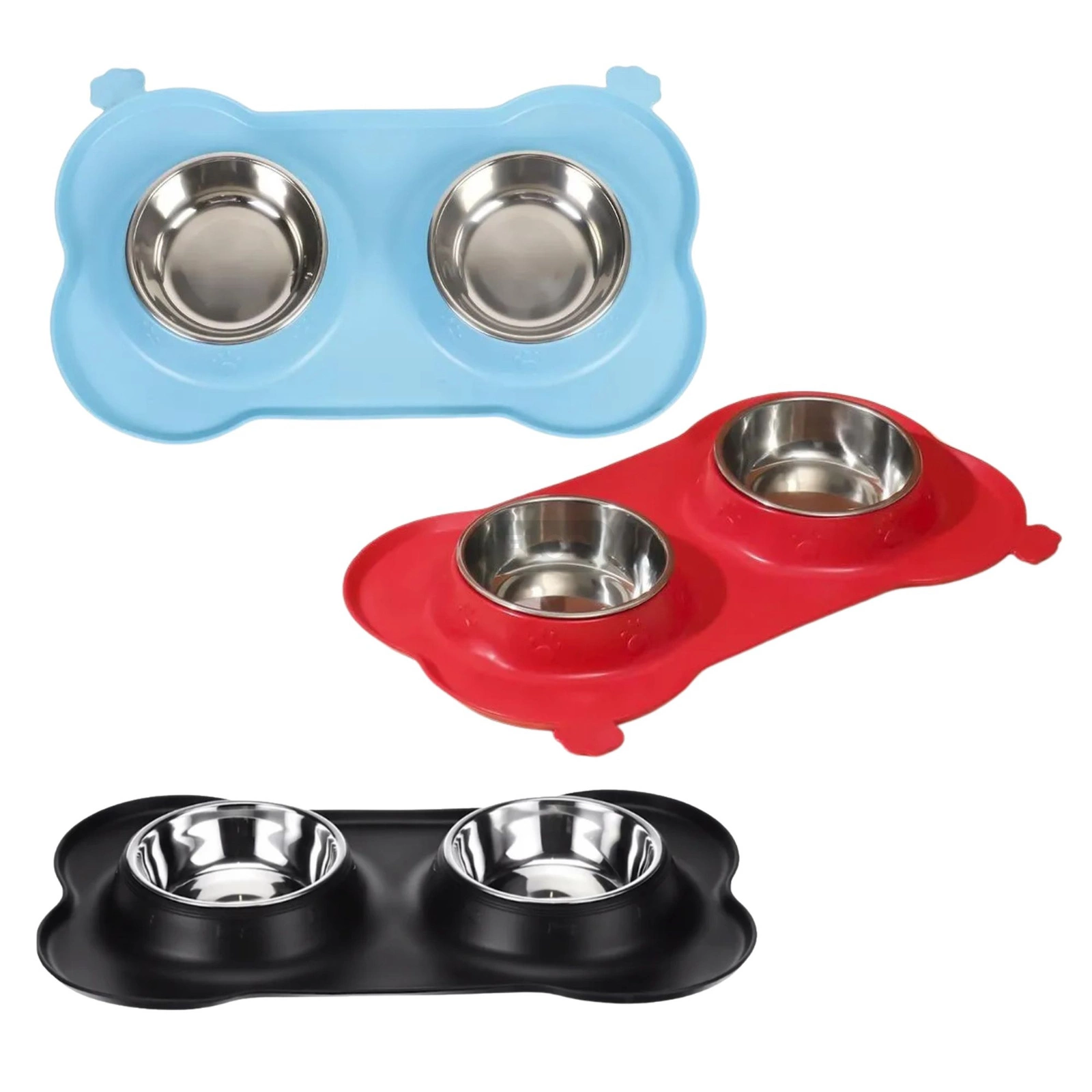 Podwójna miska z antypoślizgową podstawką dla królika 2×250 ml (stal nierdzewna + silikon)