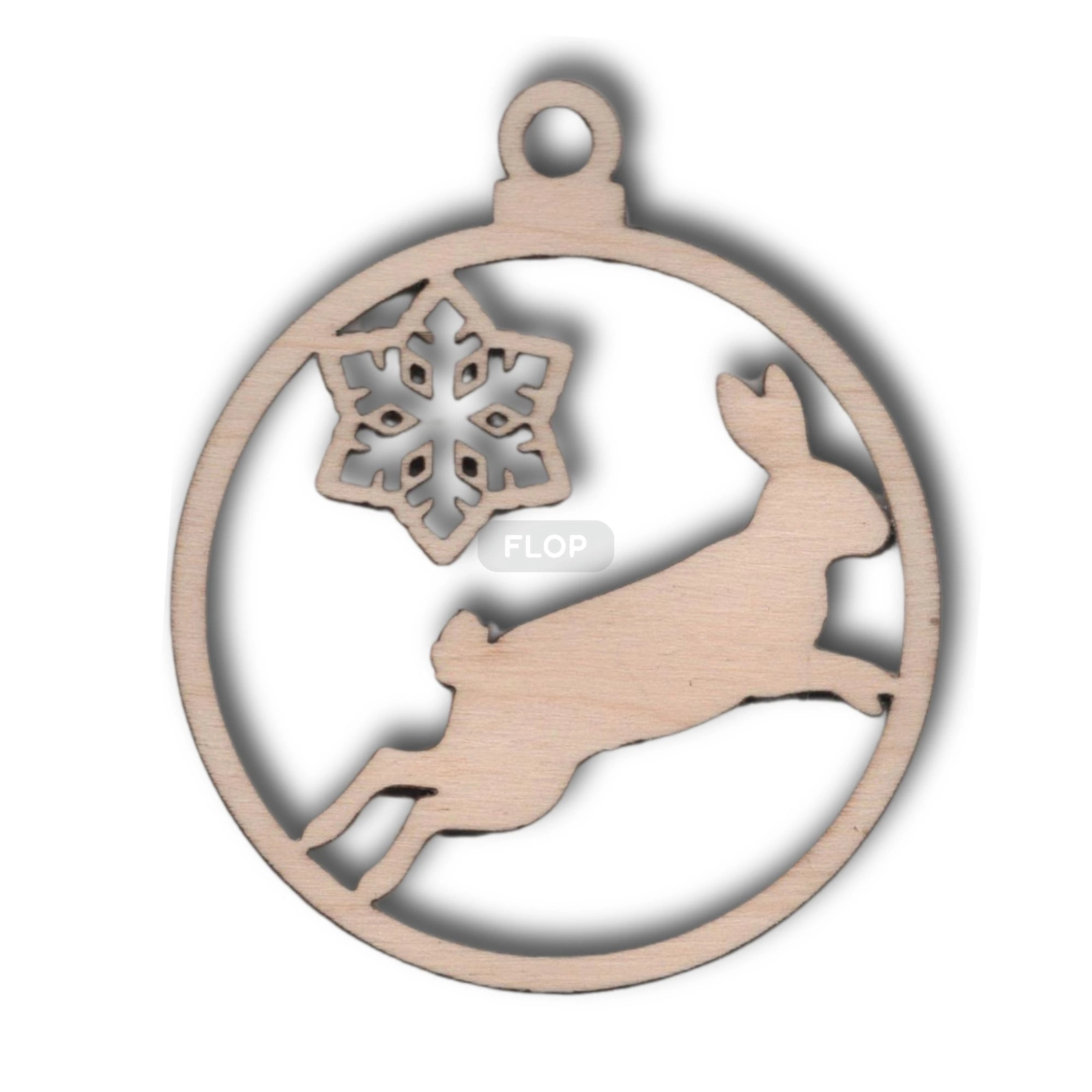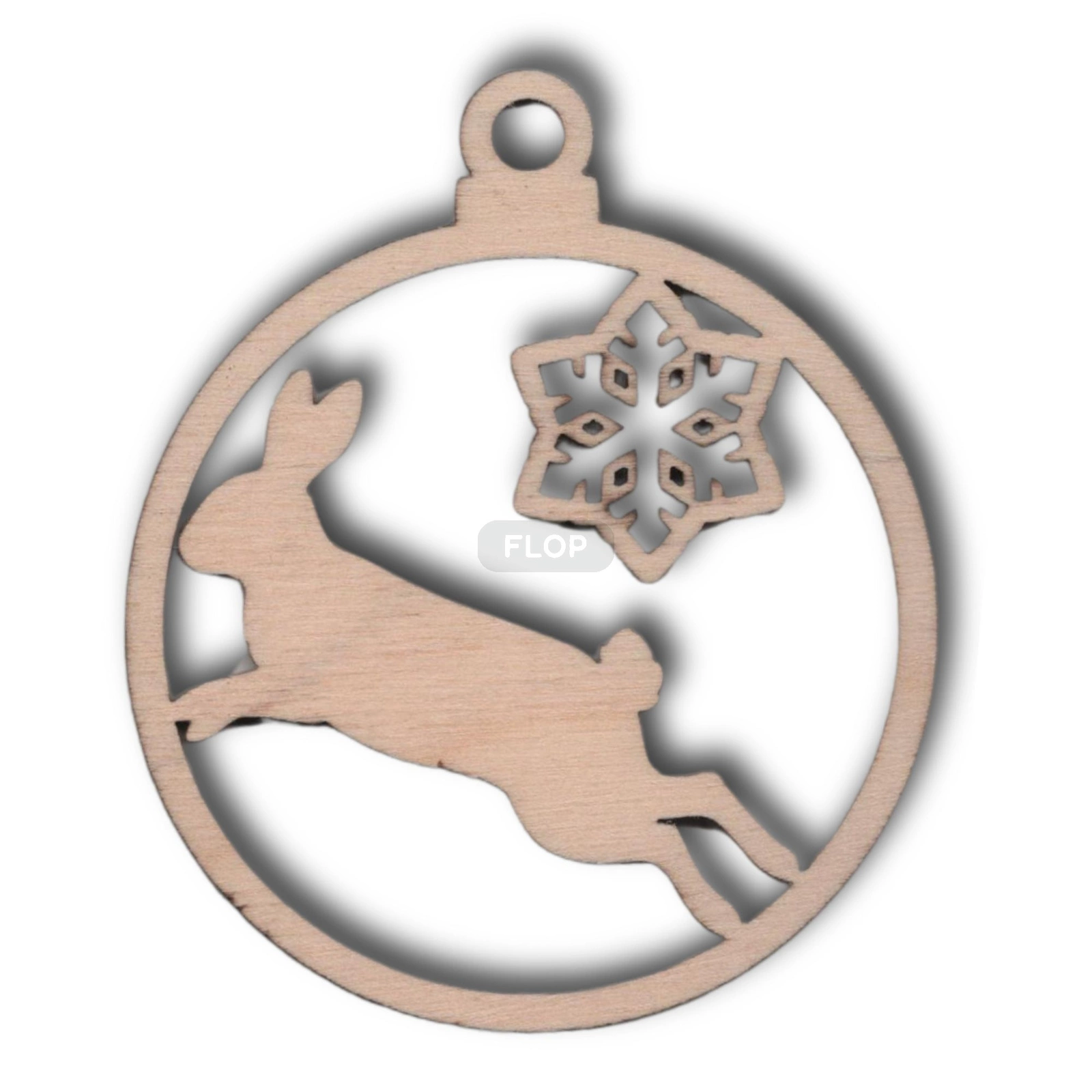 Każda bombka powstała z wysokiej jakości sklejki drewnianej, dzięki czemu zachowuje lekkość i trwałość. Laserowe cięcie pozwoliło uzyskać idealnie odwzorowany kształt królika oraz finezyjną śnieżynkę, która nadaje ozdobie świątecznego uroku. Jedna strona bombki jest gładko szlifowana i jasna, druga – delikatnie przyciemniona, co podkreśla naturalny charakter materiału.