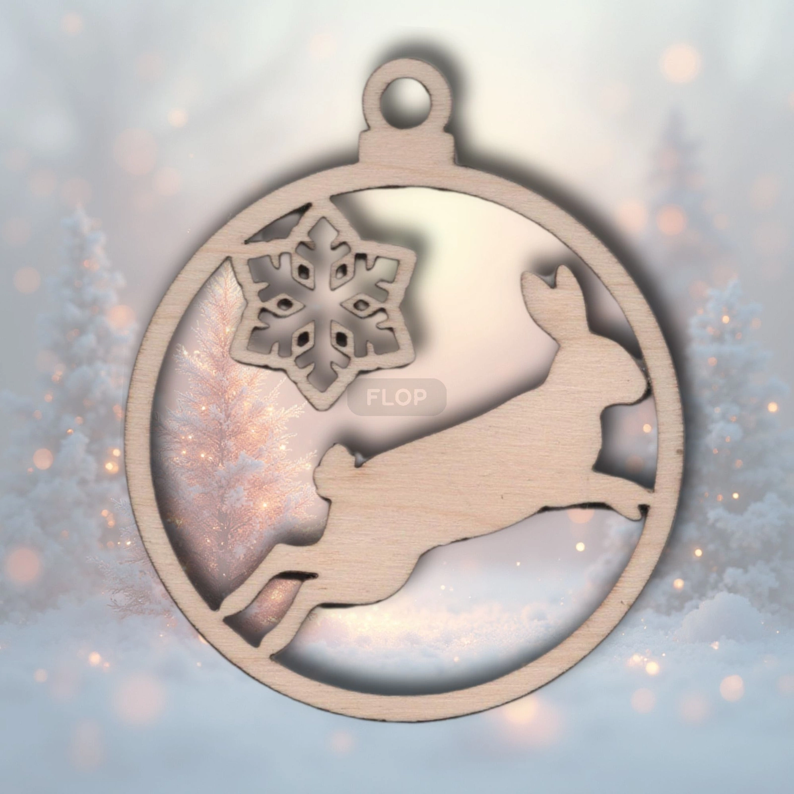 Świąteczna bombka z królikiem – kolekcja 2025, sklejka brzozowa