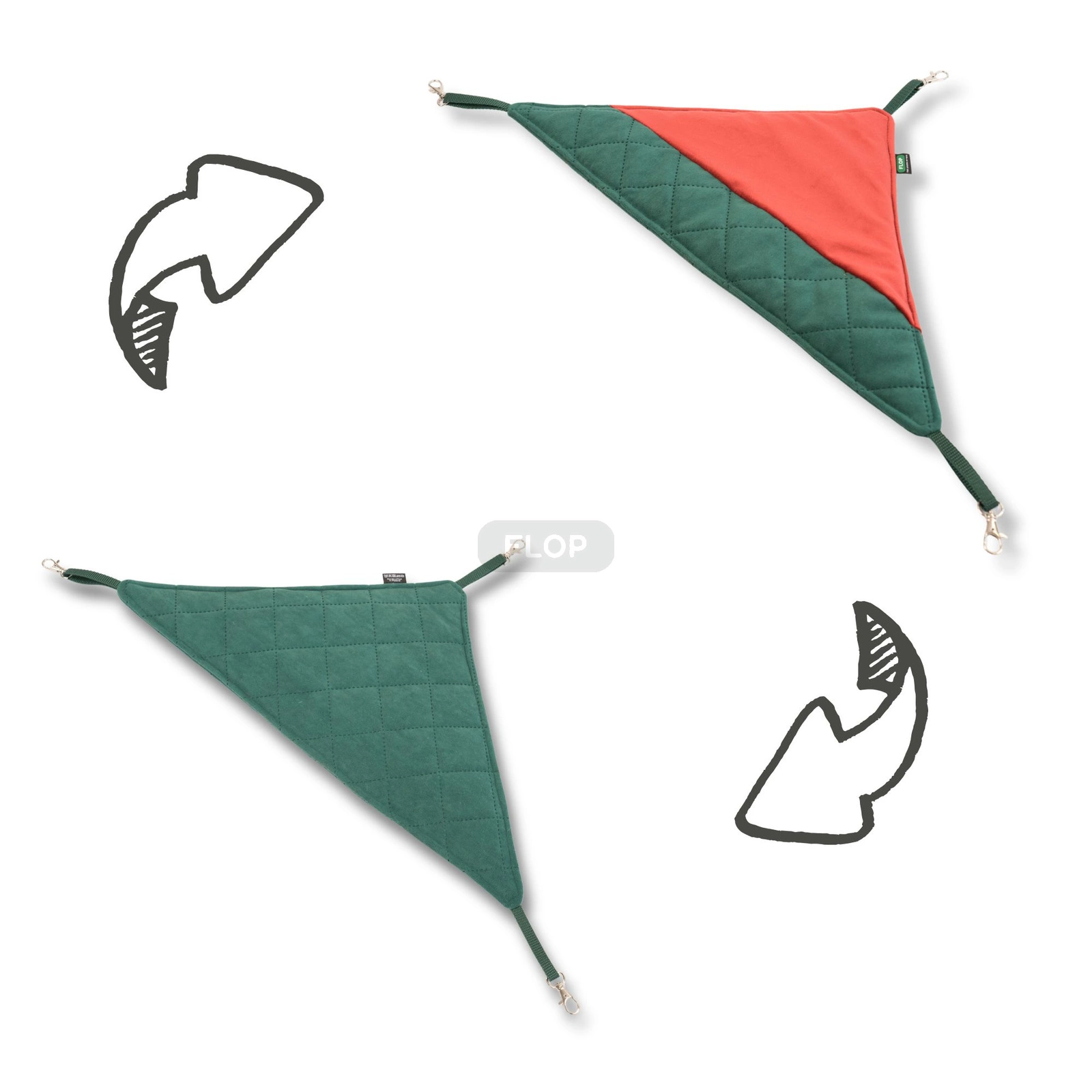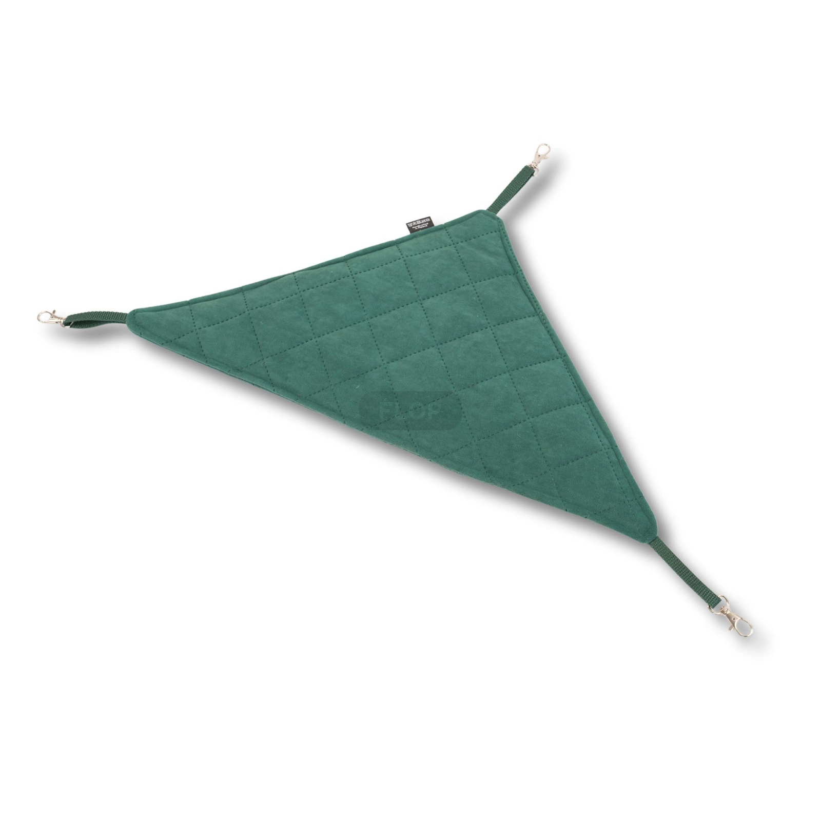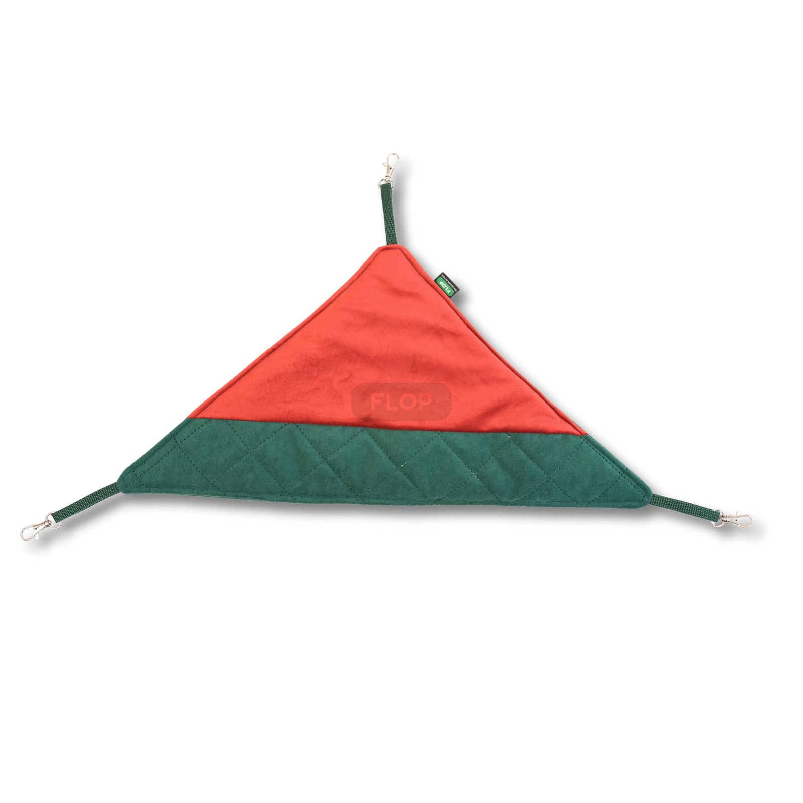 Świąteczny hamak narożny FLOP to przytulne i funkcjonalne legowisko dla królików miniaturowych oraz młodych króliczków. Trójkątny kształt umożliwia montaż w narożniku klatki, co pozwala zaoszczędzić miejsce, a jednocześnie tworzy miękką, bezpieczną przestrzeń do odpoczynku i obserwacji otoczenia.