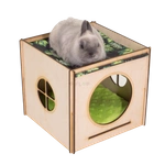 Wielki domek z dachem - hamakiem w liście na czarnym tle i poduchą dla królika domowego