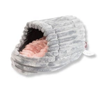 Wielka przytulna budka z polaru minki stripes (szary z różową poduchą)